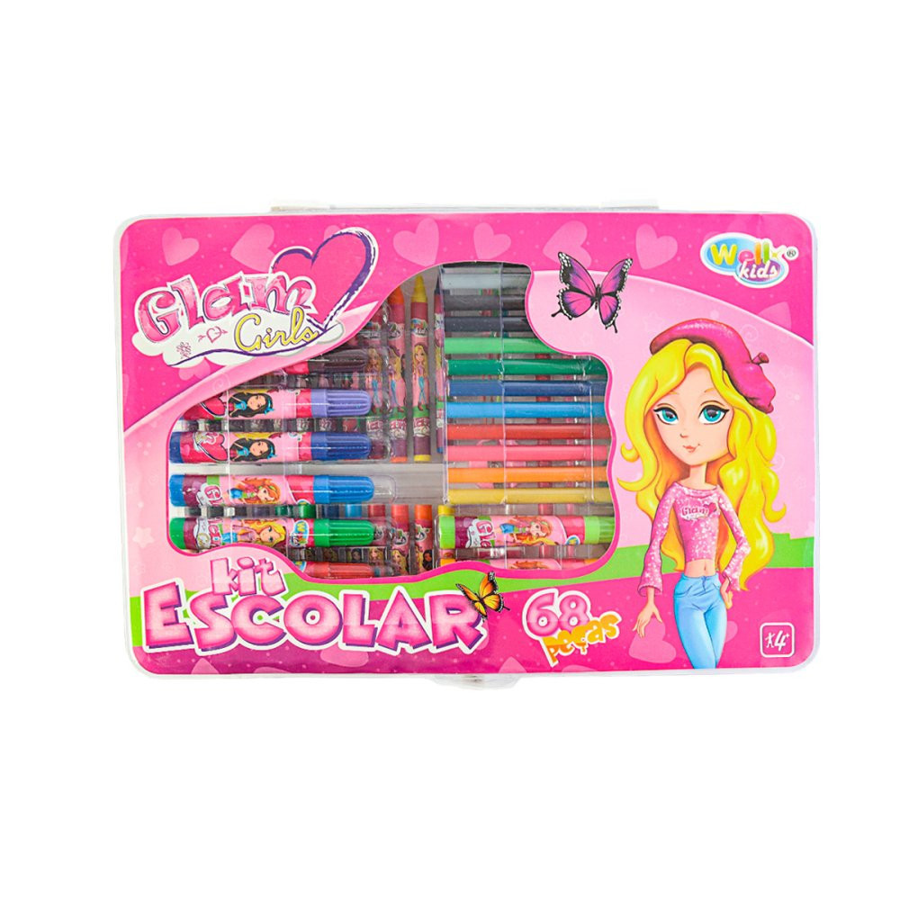 Maleta Kit Escolar com 68 Peças Glam Girls