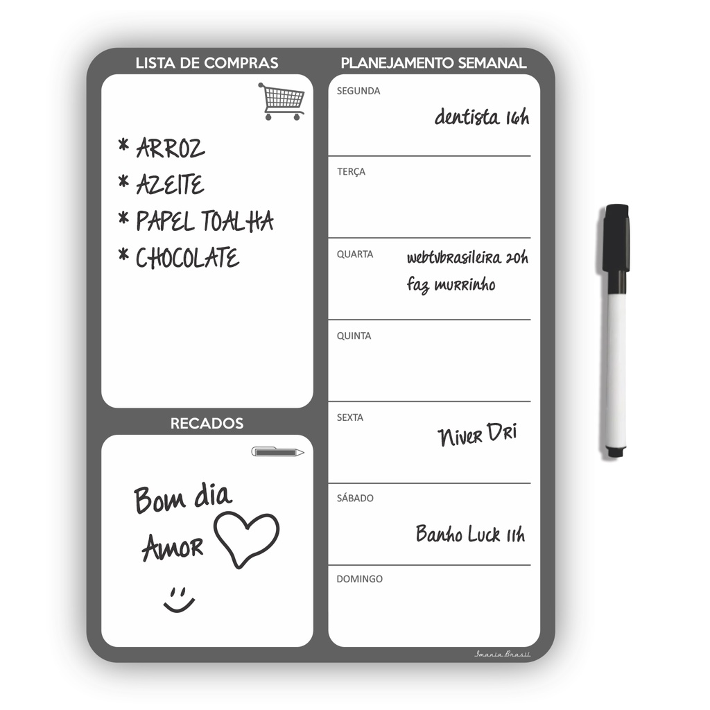 ima de Geladeira Porta recados 28x19 cm com Caneta Magnética Lista de Compras Anotações Planner