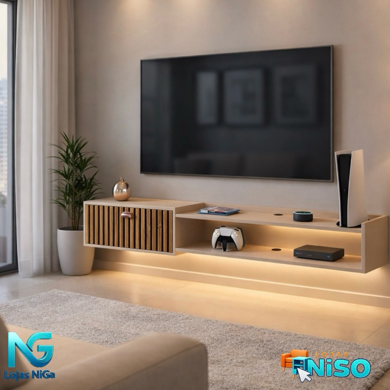 Rack Suspenso Para Quartos e salas com 8 Prateleiras Para Tv de 60 50 42 e 32 Polegadas