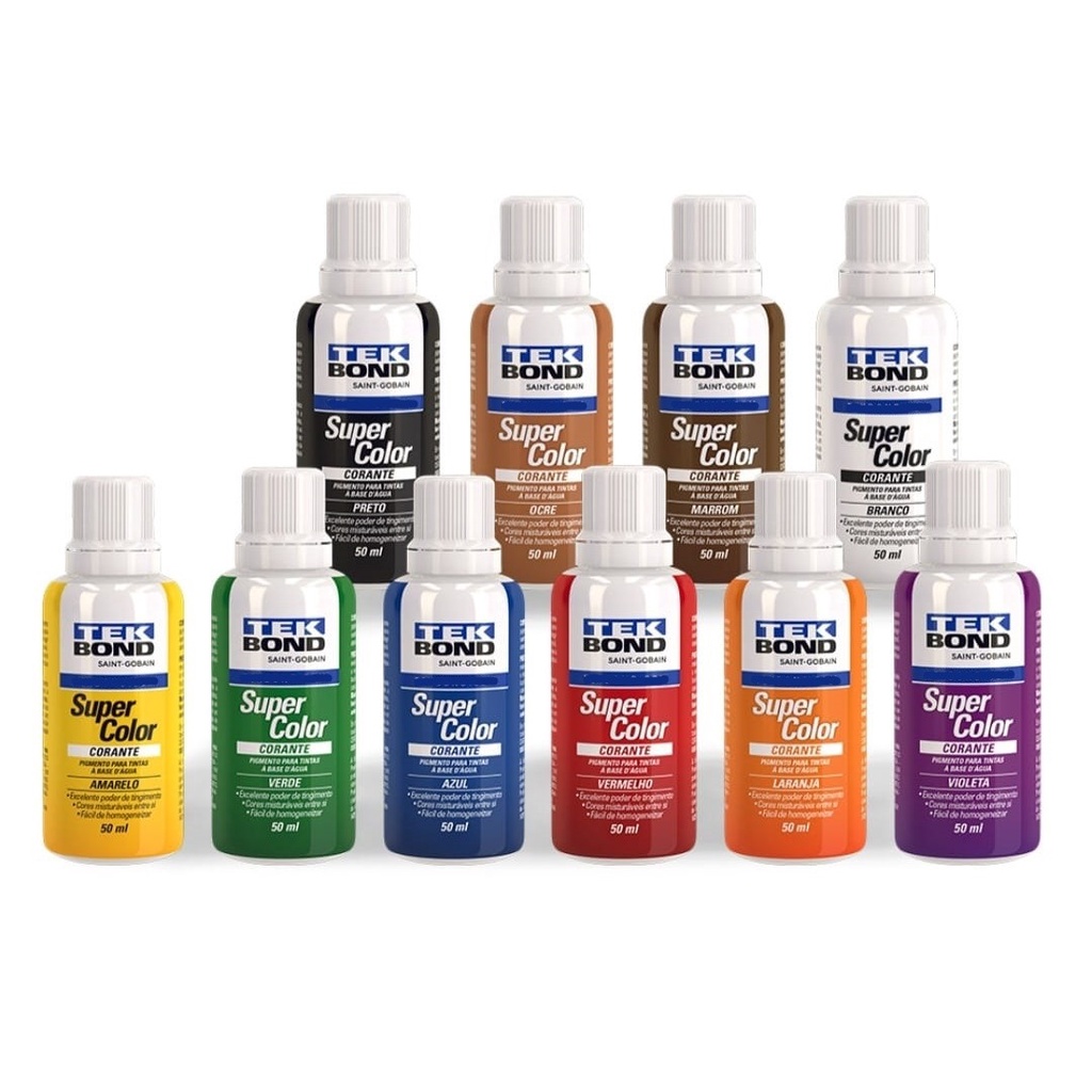 Kit 10 Corante Pigmento Líquido para Tinta e Massa Tekbond 50ml Todas as Cores
