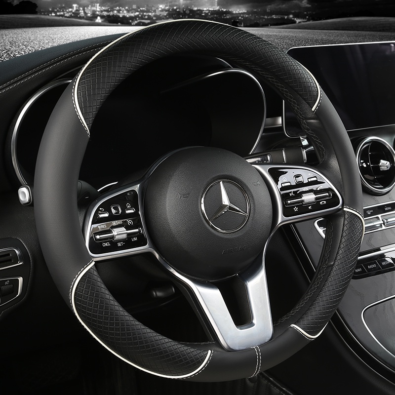 Capa Elástica Para Volante De Quatro Estações Universal Carro 37-38cm Bordado Em Couro Cor Diamante