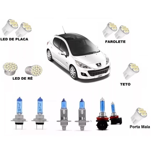 Kit Lampada Super Branca Farol + Led Peugeot 207