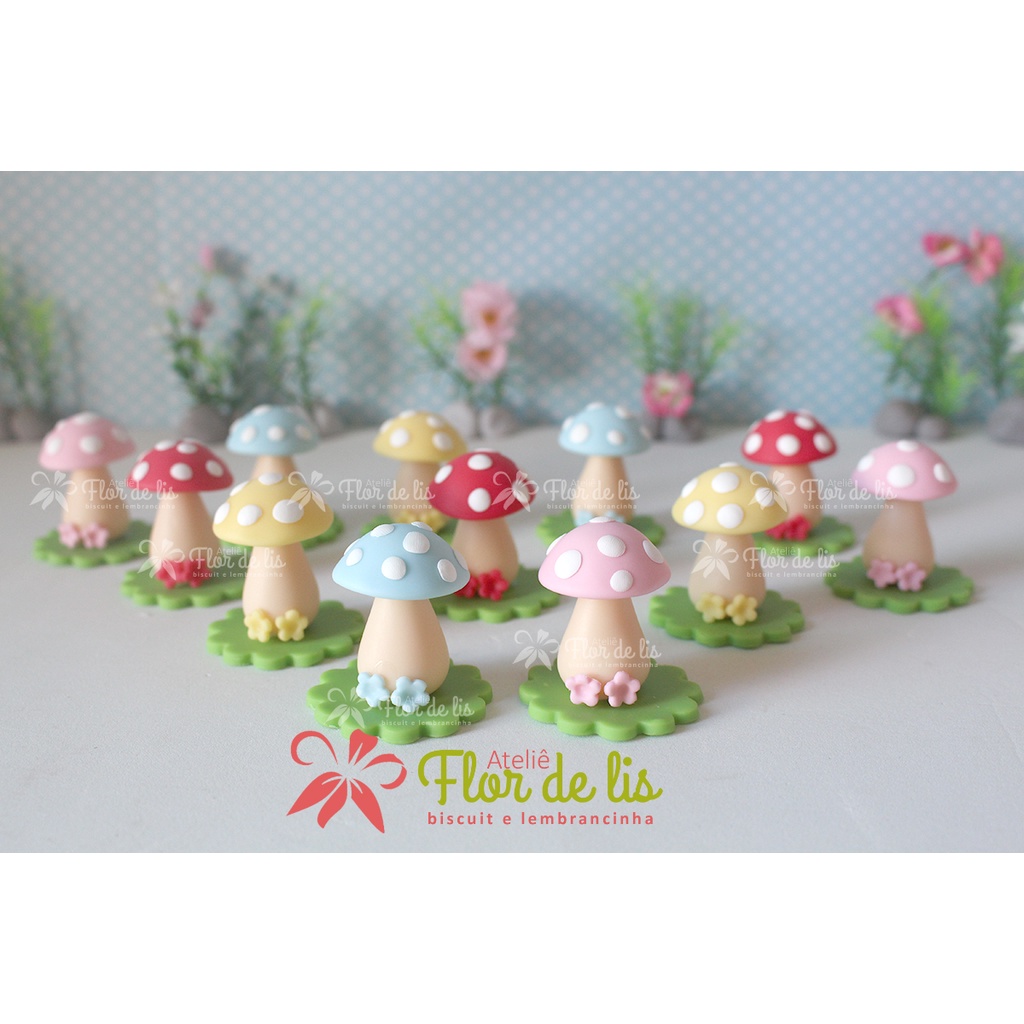 Cogumelos com Base em Biscuit Jardim Encantado - 5 Peças