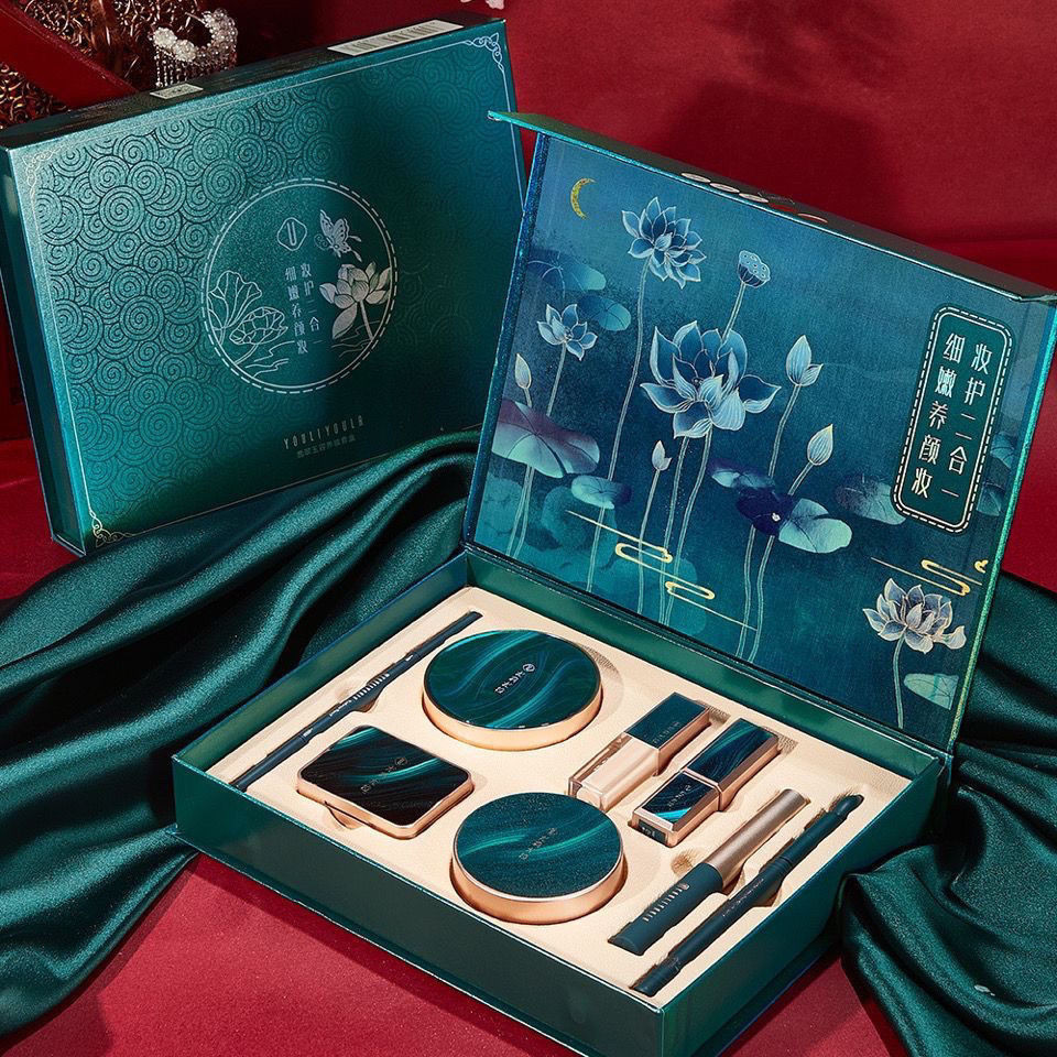 Caixa de presente de maquiagem corretivo almofada de ar pó solto rímel linha dos olhos lápis de sobrancelha Conjunto de batom para meninas para iluminar cosméticos