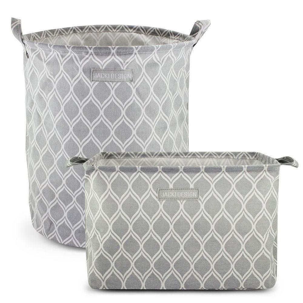 Conjunto de Cesto para Roupa-brinquedo e Cesto Organizador Retangular Cinza - Listrada