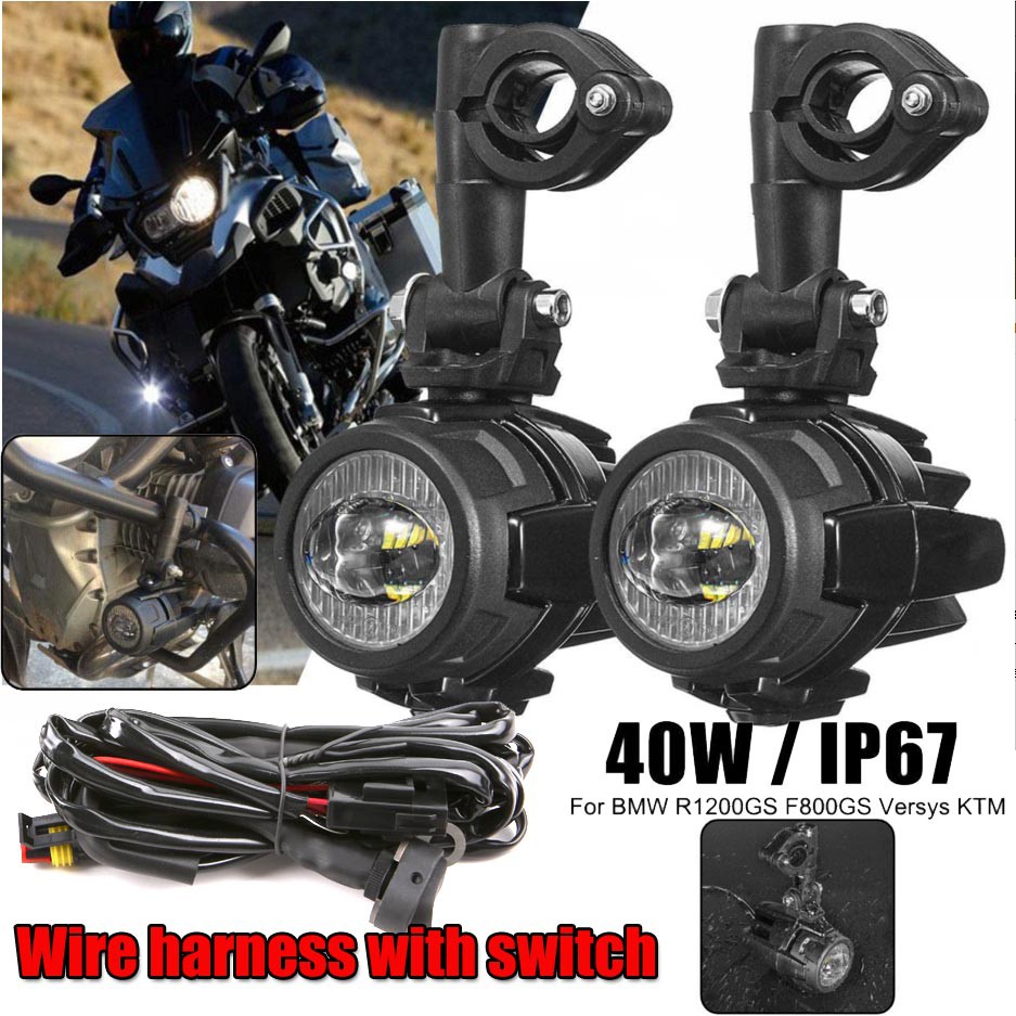 Farol de nevoeiro LED para motocicleta com chicote elétrico para luzes auxiliares BMW R1200GS F800GS F700GS 40W branco