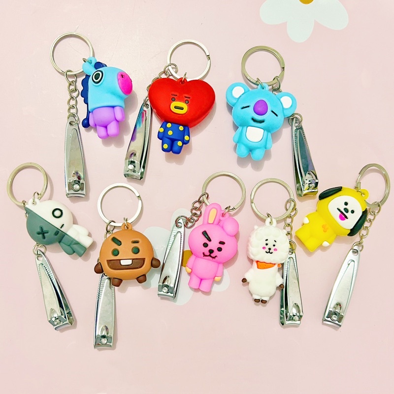 Chaveiro com corta unha/ Pingente de Boneco de Epoxy do BTS/BT21 p/Carro/Bolsa