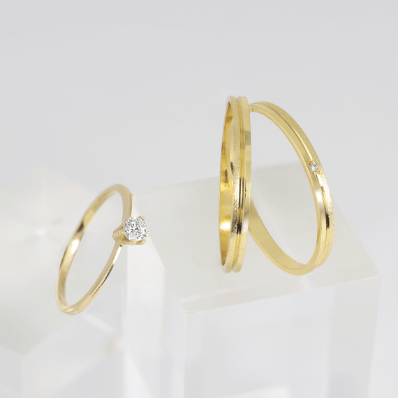 Kit Alianças de Noivado com Anel de Ouro - AS1836