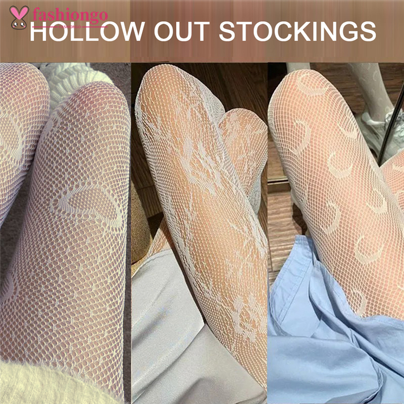 FASHIONGO Women Meias-Calças Finas De Renda Sexy Com Flor De Meia-Calça Fina Carta Da Lua Brancas Pretas
