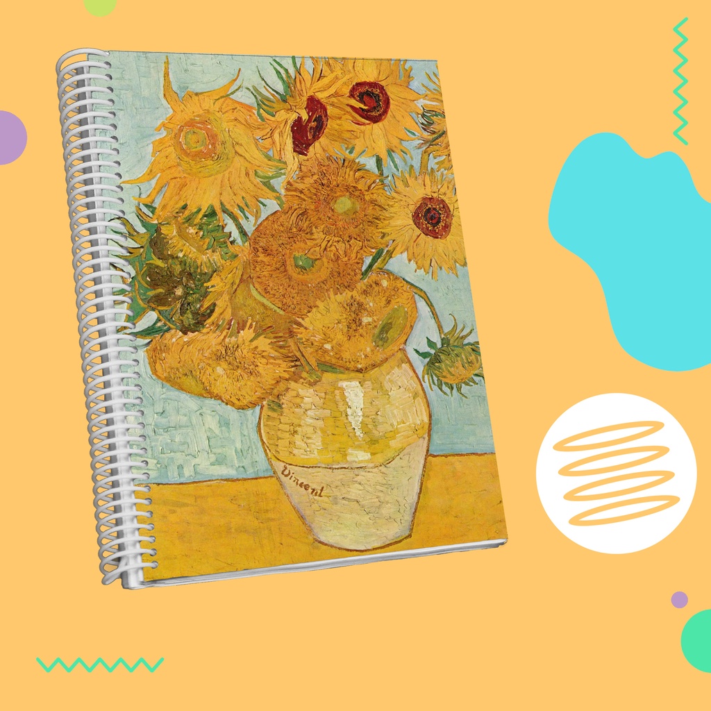 Planner Permanente Não Datado Capa Dura Espiral 15x21cm | Girassóis de Van Gogh | FábriCaderno