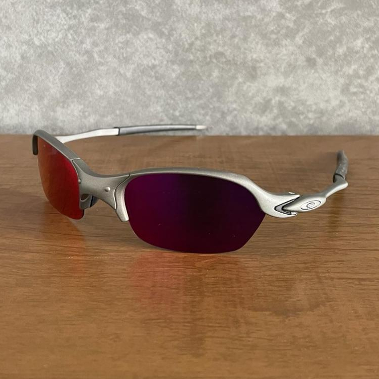 Óculos de Sol Juliet Dark Rubi carbon metal importado preto lente vermelho escuro espelhado