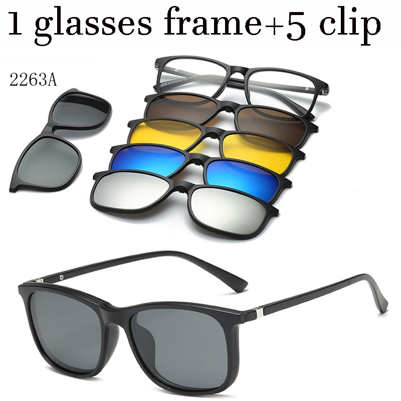 Polarizado Clipe Magnético Óculos De Sol, Adequado Para Miopia, Com Clipe, 1 Óculos De Armação + 5 Óculos Clipe, Unisex