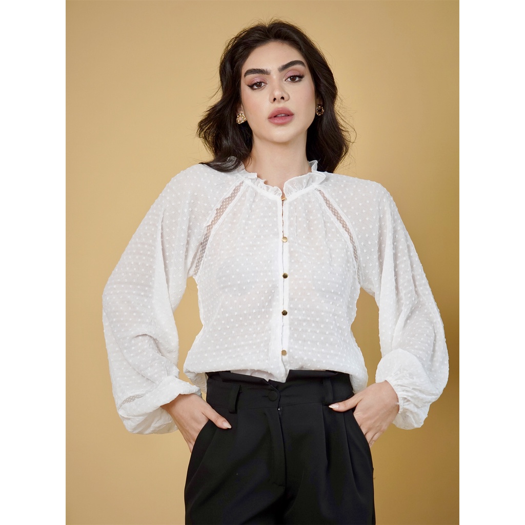 Camisa Manga Longa Bufante Feminino Botão Metal