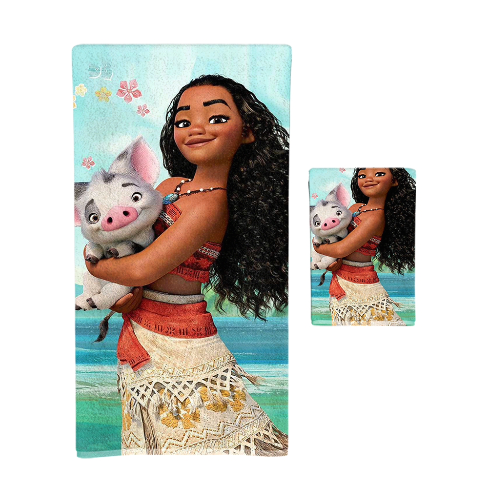 Kit 2 Peças Toalha de Banho + Toalha de Mão Tecido Premium Oxford Aveludado Estampadas Envio Imediato Personagem de Moana Promoção Exclusiva