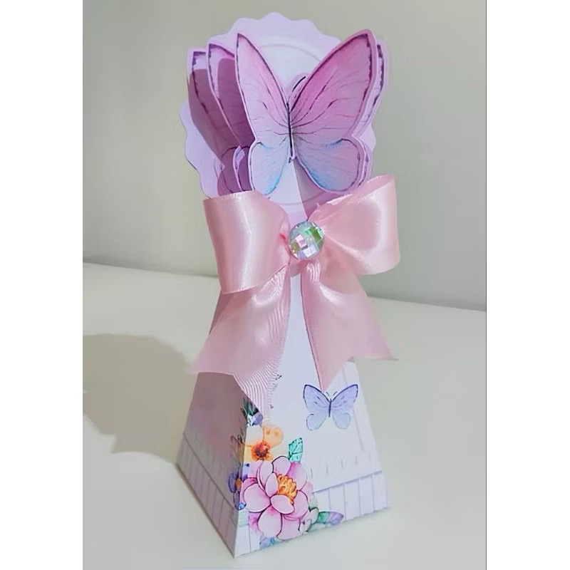 Caixa pirâmide Jardim Encantado Jardim das Borboletas kit festa personalizado Lembrancinha