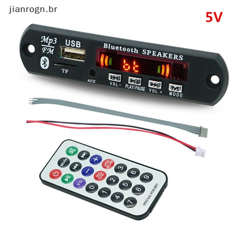 ROGN Placa De MP3 Sem Fio Bluetooth 5.0 5V MP3 Carro Áudio USB TF FM Módulo De Rádio MP3 Player Com Controle Remoto BR