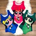 Body Meninas Super Poderosas Estampa Brilho Docinho Regata Feminino Carnaval Fantasia Festa