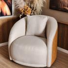 Poltrona Sophia Base Giratória- com Almofada, Redonda, Linho Bege Sintético Caramelo, Orgânico