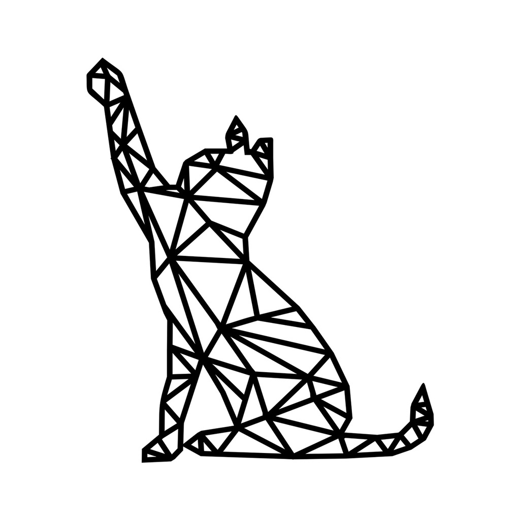 Quadro Decorativo Vazado Gato Geométrico MDF 3mm Preto Fosco