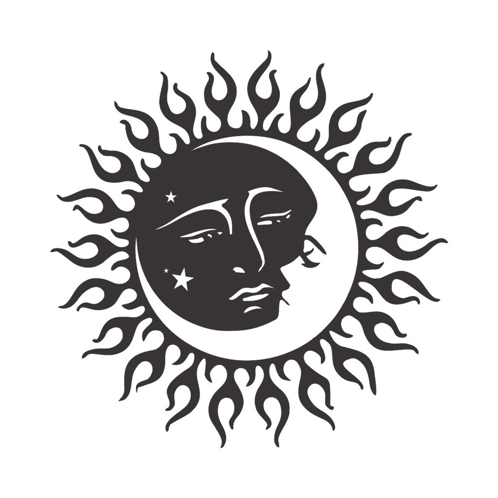 Quadro Decorativo Vazado Sol e Lua MDF 3mm Preto Fosco