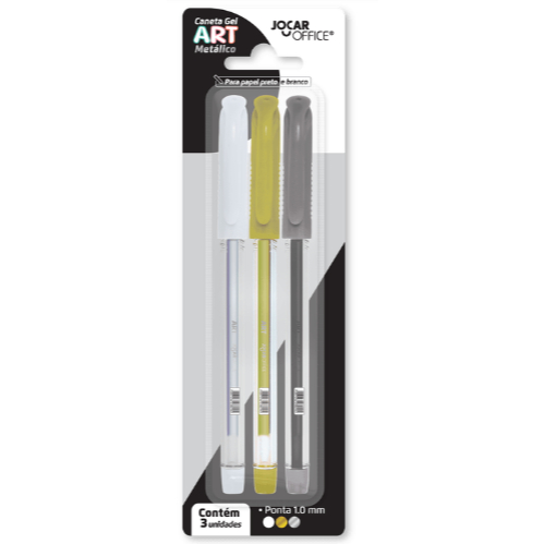 CANETA GEL ART 1.0 METALICO - BLISTER C/ 3 UNID. JOCAR OFFICE