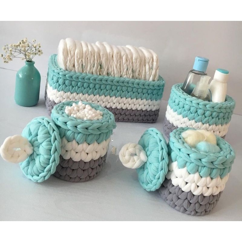 Kit higiene para bebê de crochê em fio de malha.