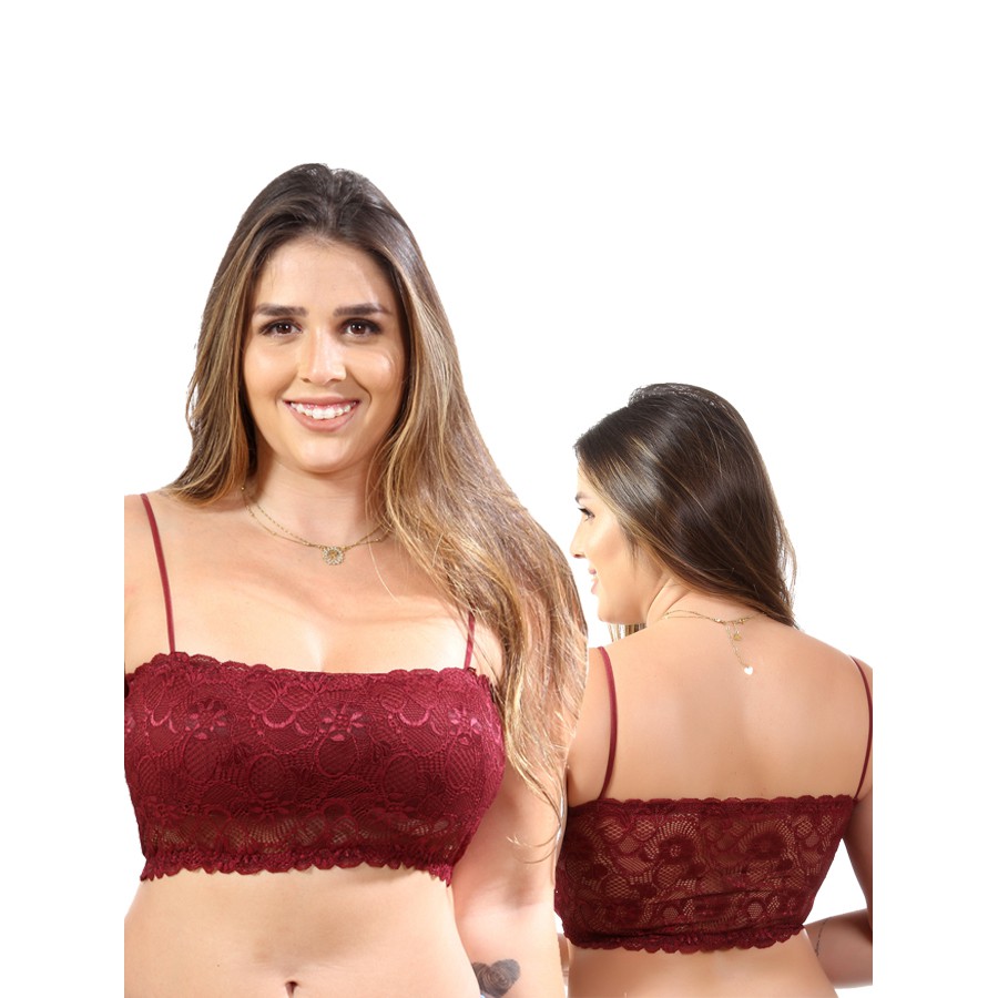 top faixa sutiã com bojo todo em renda alça fina faixinha soutien lingerie