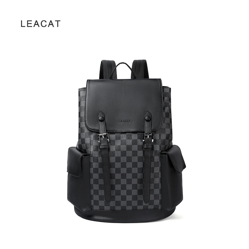 Leacat Moda Estilo Escritório Mochila De Couro Para Computador Com Padrão Listrado