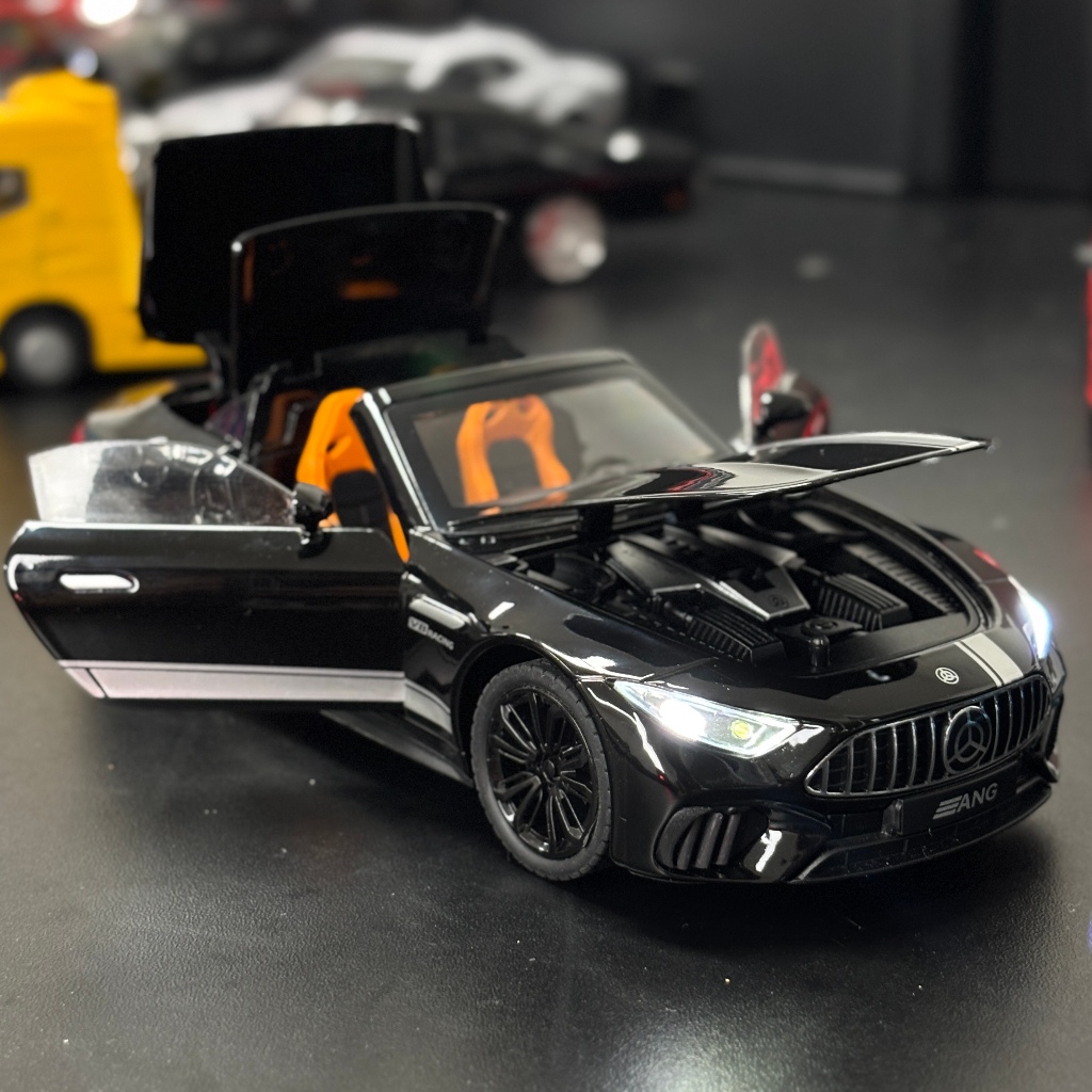 Miniatura Mercedes-Benz SL63 AMG Carrinho Conversível Coleção Metal Fricção Abre As Portas Com Som E Led 1/24