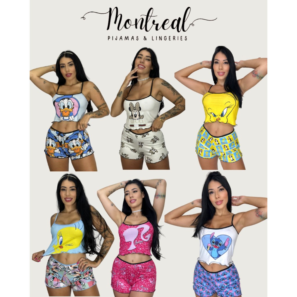 Short Doll Cropped Ondinha Baby Feminino Pijama Roupa De Dormir Virgínia Personagem Lilo Stitch Promoção