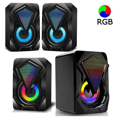 Caixa De Som Para Computador Pc Notebook 6w Led RGB Gamer Caxinha Alto Falante