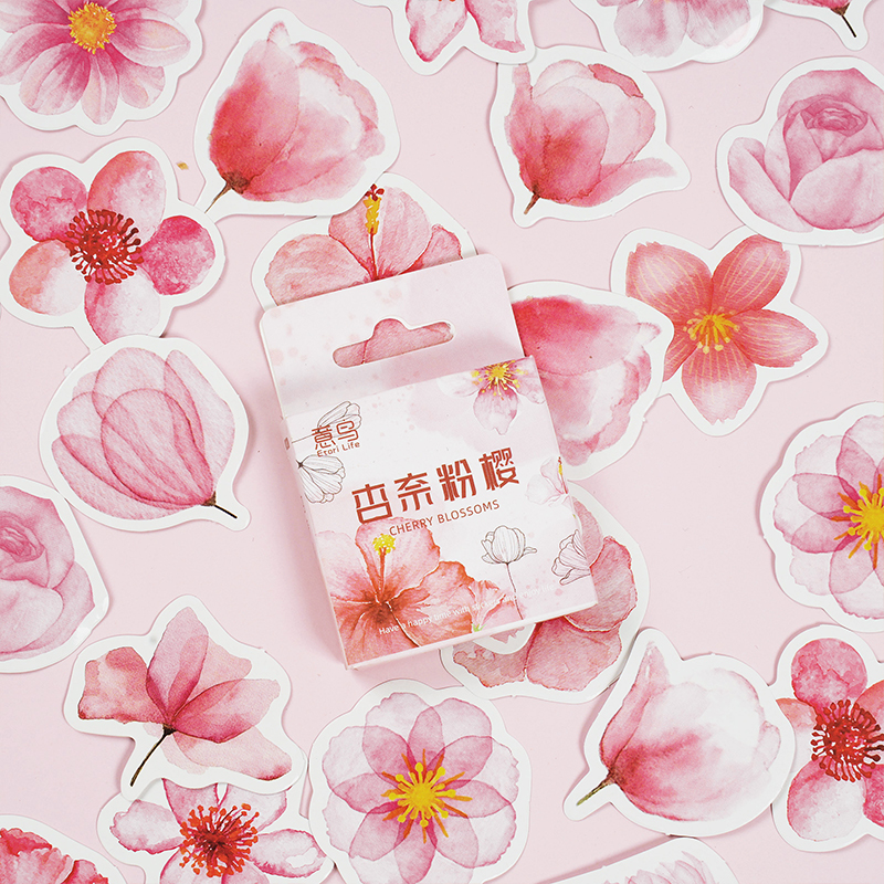 46pcs PVC Criativo E Fofo Flores De Cerejeira Rosa Colagem Padrões Ricos De Diários Estudantis De Bricolage , Copos , Laptops , Livros De Rascunho , Presente , Adesivos Decorativos