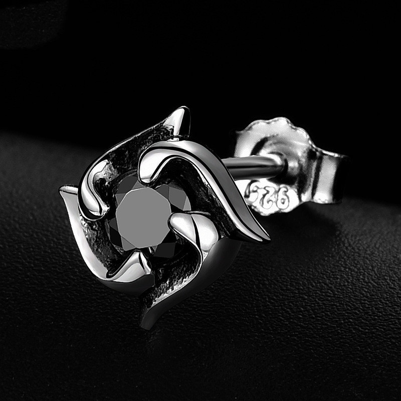 Brincos Pretos De Trevo De Quatro Folhas Masculinos Trendy Estilo Único Nicho Prata Joias Gemas Verão Hip-Hop Ruffian Bonito