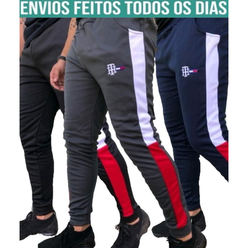 kit 3 calça moletom pelúcida com amarração masculina estilo jogger academia ,caminhada e casual confortável para o dia a dia
