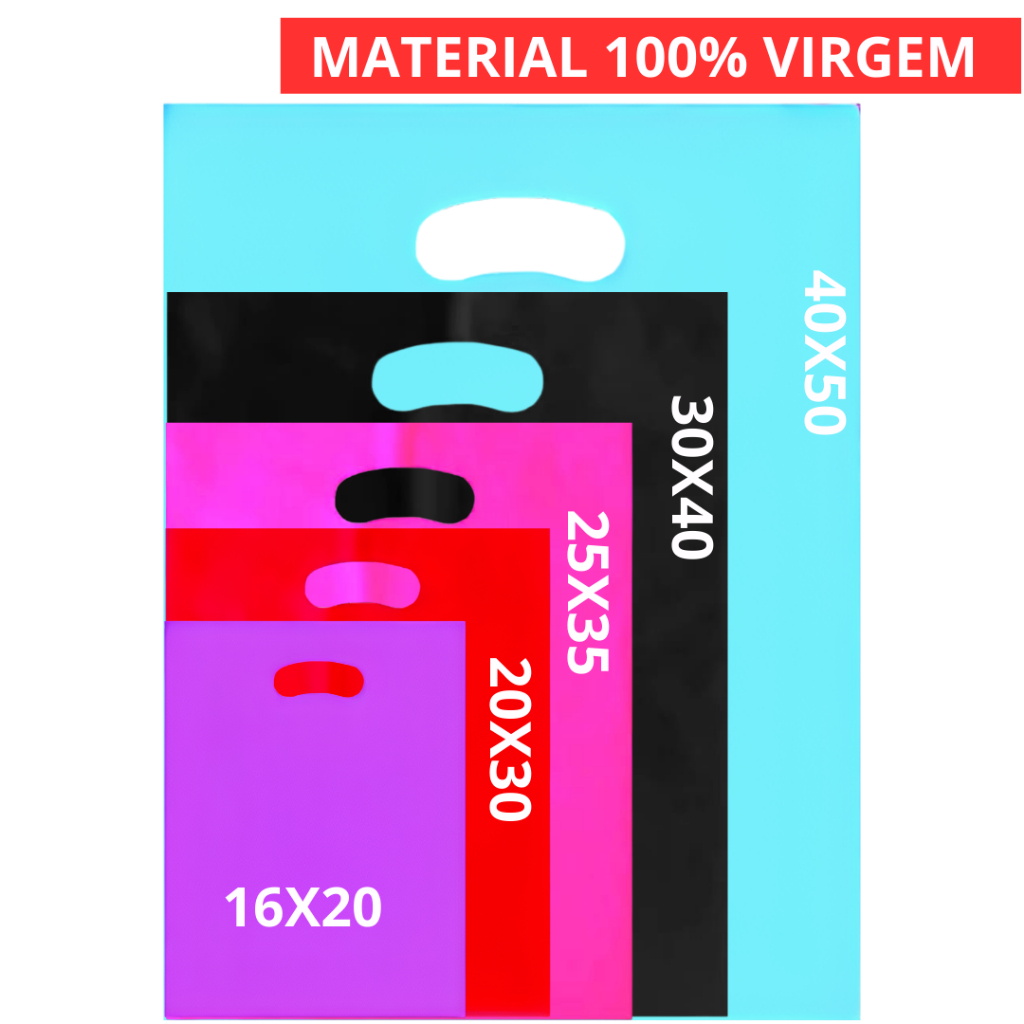 100 Unidades sacolas plasticas 16x20 - 20x30 - 25x35 - 30x40 - 40x50 - alça vazada - boca de palhaço