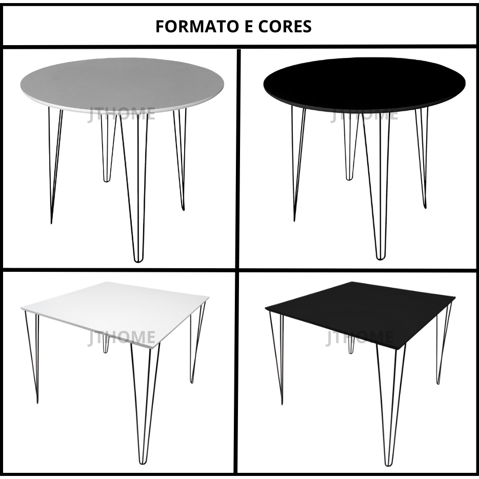 Mesa Jantar Redonda Ou Quadrada 70cm 80cm 90cm Tampo MDF Pé Metal Hairpin Triplo 1/4