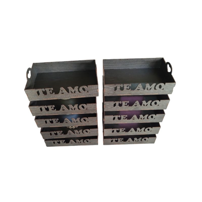 KIT COM 10 UNIDADES. Bandeja de MDF cru 6mm. Dia dos namorado com frase Te amo. 20x18x6