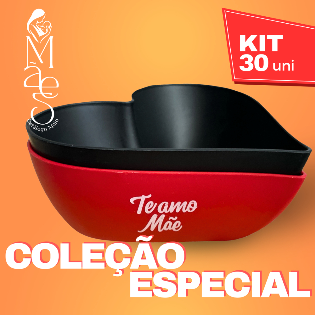 ❤️ Exclusivo Kit de 30 Petisqueira Coração Plástica - 350ml Personalizado "Te amo Mãe"