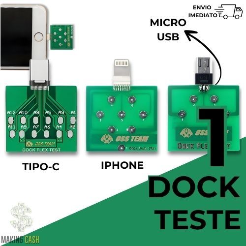 Placa de Teste Dock Flex para Testar Conector de Carga de Celular Lightning Iphone Micro Usb Tipo C