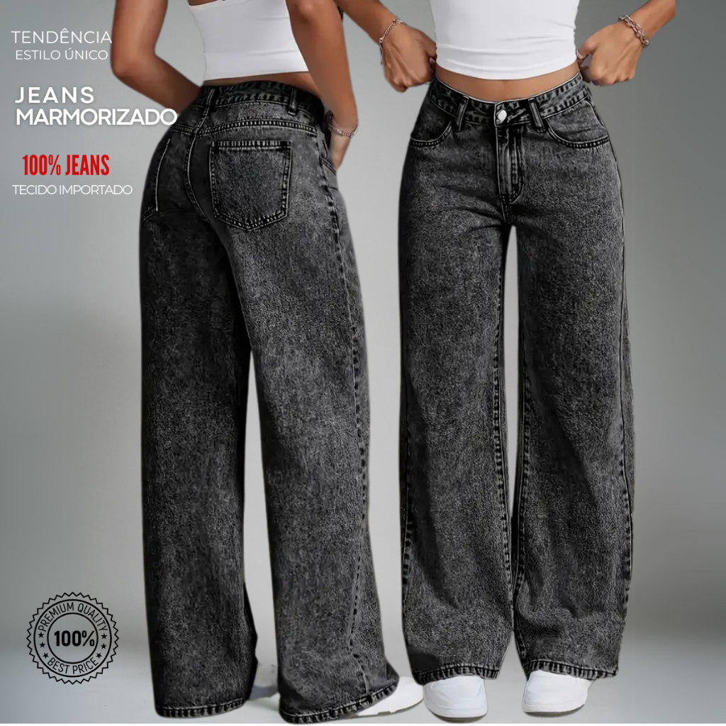 Calça Jeans Feminina Wideleg Pantalona Grafite Marmorizada 34 Ao 44