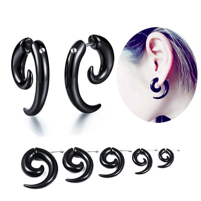Um Par De Brinco Falso Em Espiral Preto Piercing Unissex