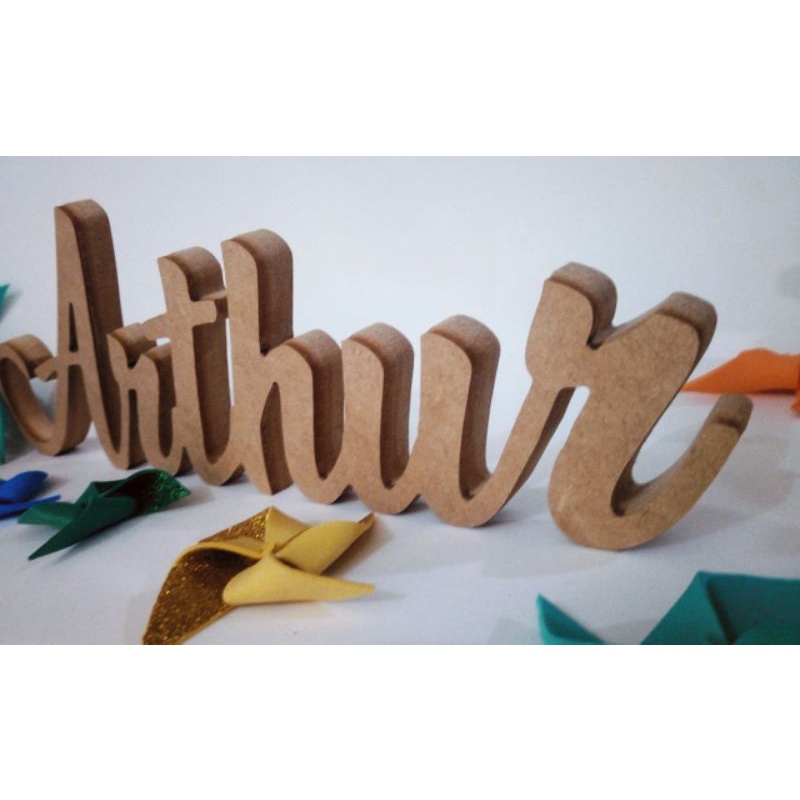 Nome em Mdf cru na Base com 12cm de Altura e Largura Proporcional