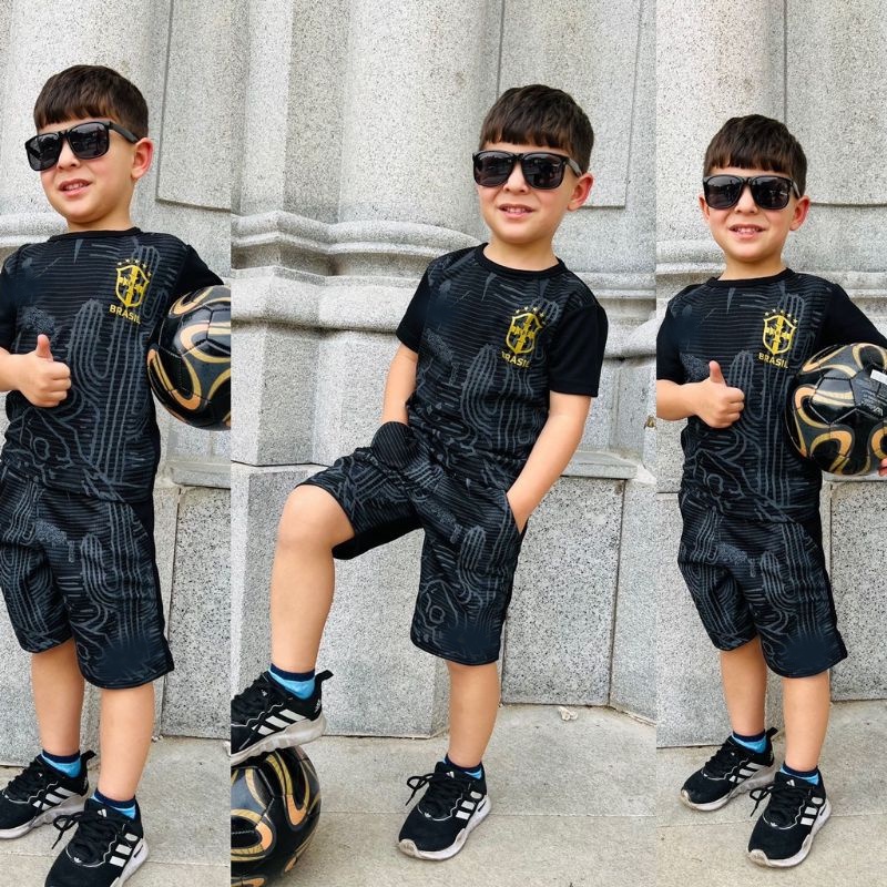 Conjunto Copa do Mundo Juvenil Masculino Kit Camiseta e Bermuda Infantil do Brasil