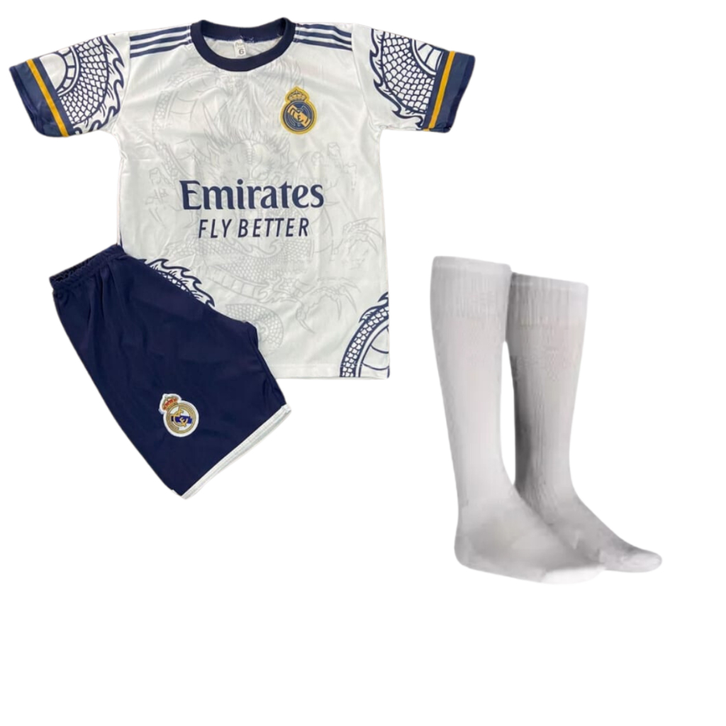 Kit Conjunto + Meião Infantil Juvenil Futebol Real Madrid tamanho do 06 ao 14 camisa e short