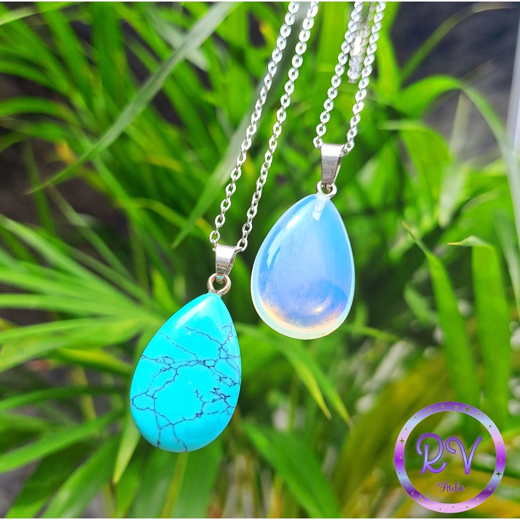 Colar Aço Inoxidável Opala | Turquesa | Pedra da Lua