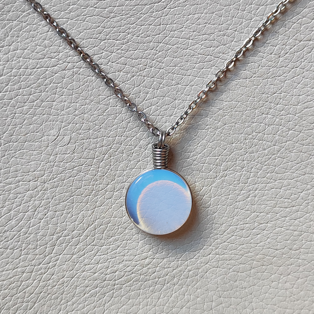 Colar de Pedra da Lua Opalina Aço Inoxidável