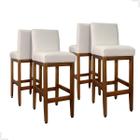 Kit 4 Banqueta Alta Estofada Cozinha Bistrô Tecido Linho Madeira Maciça Platinum Varias Cores Bancada