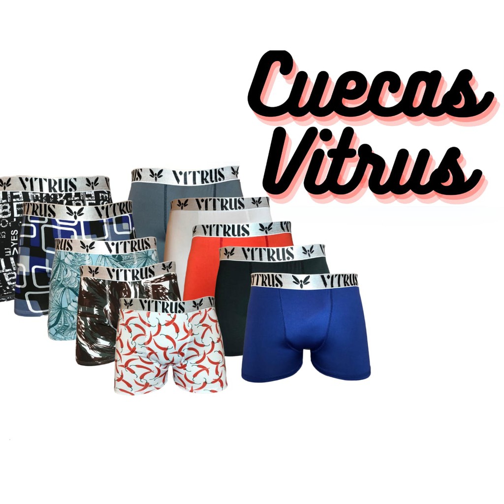 Cueca Box Boxer Vitrus Elástica Confortável Elástico Acetinado Prateado bordado Forro 100% Algodão Super Confortável Original