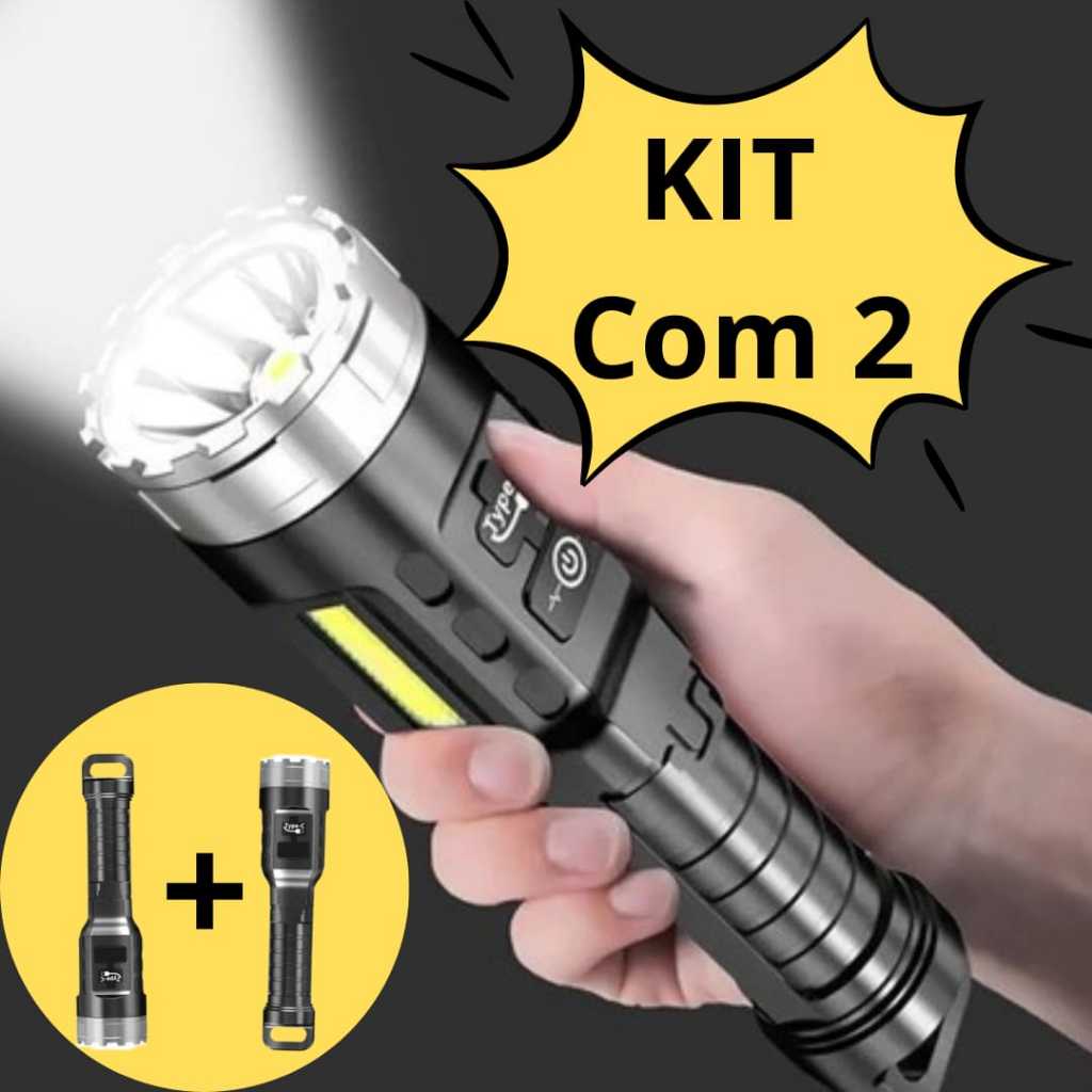 KIT COM 2 Lanternas LED recarregável led Luz Forte zoom acampamento ao ar livre lanterna tática à prova água Multifuncional COB no Lateral MTT26 (8)