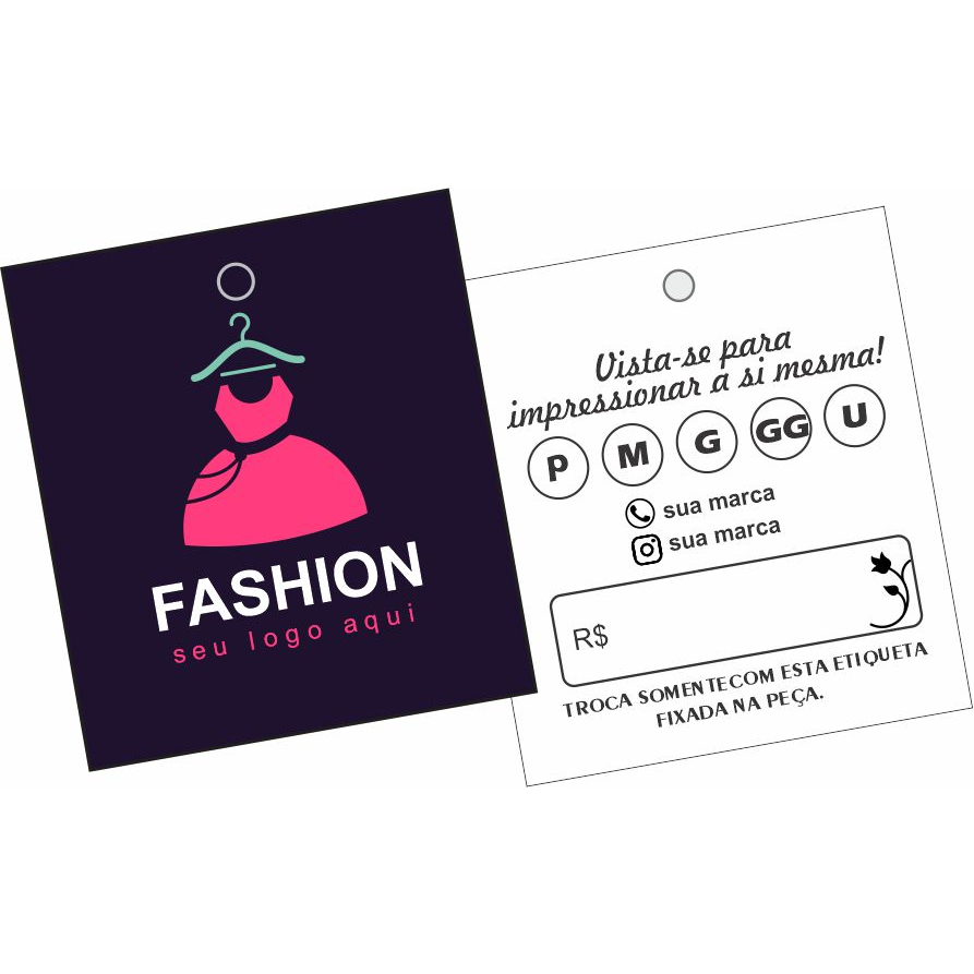 1.000 Etiquetas para Roupa Tags Acabamento Luxo 9x5 cm Laminacao Fosca e Verniz Localizado